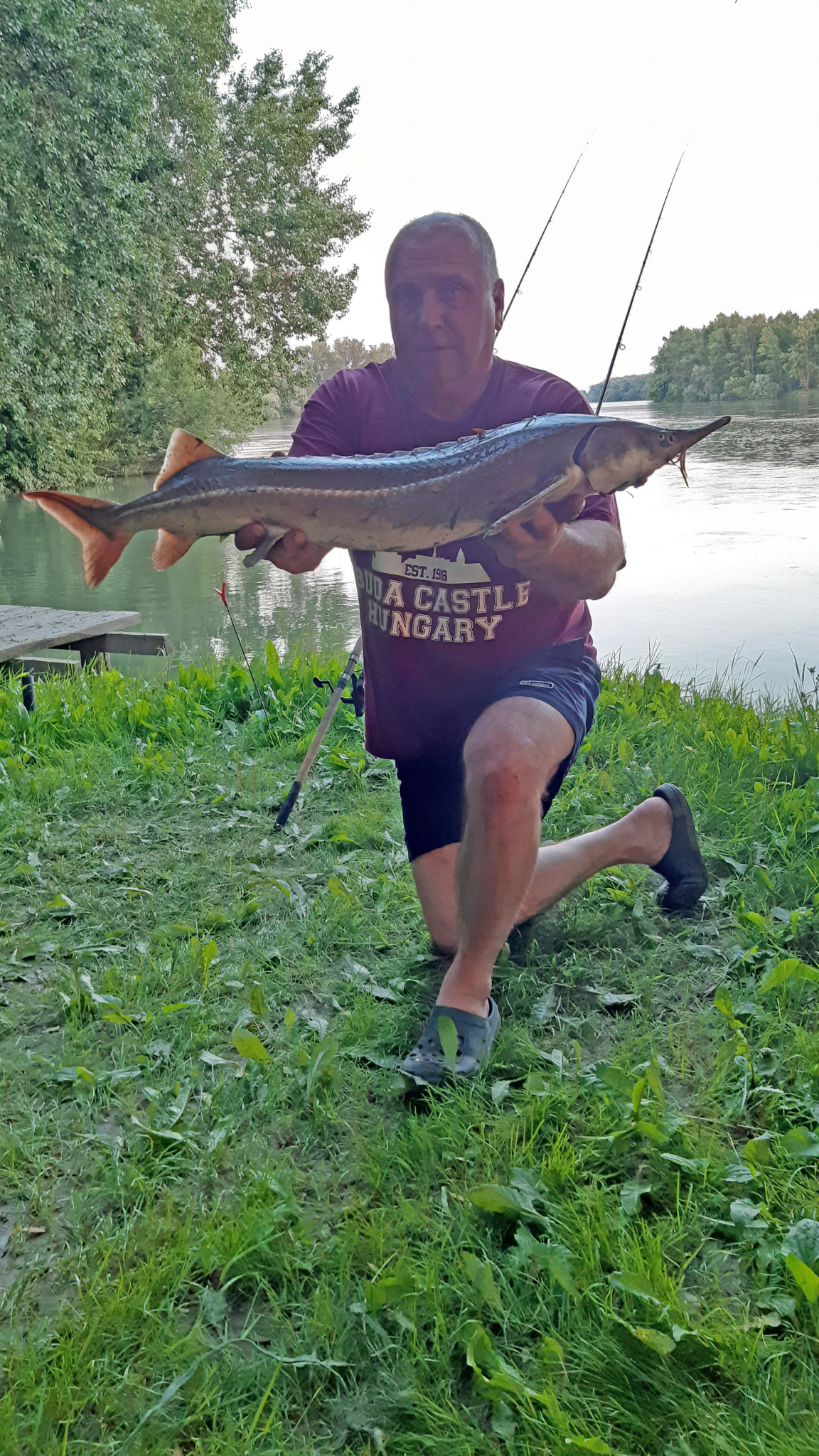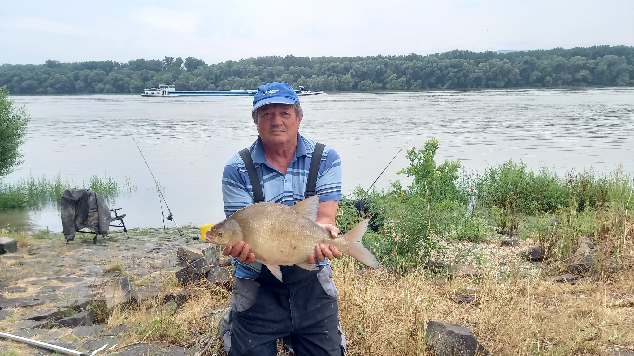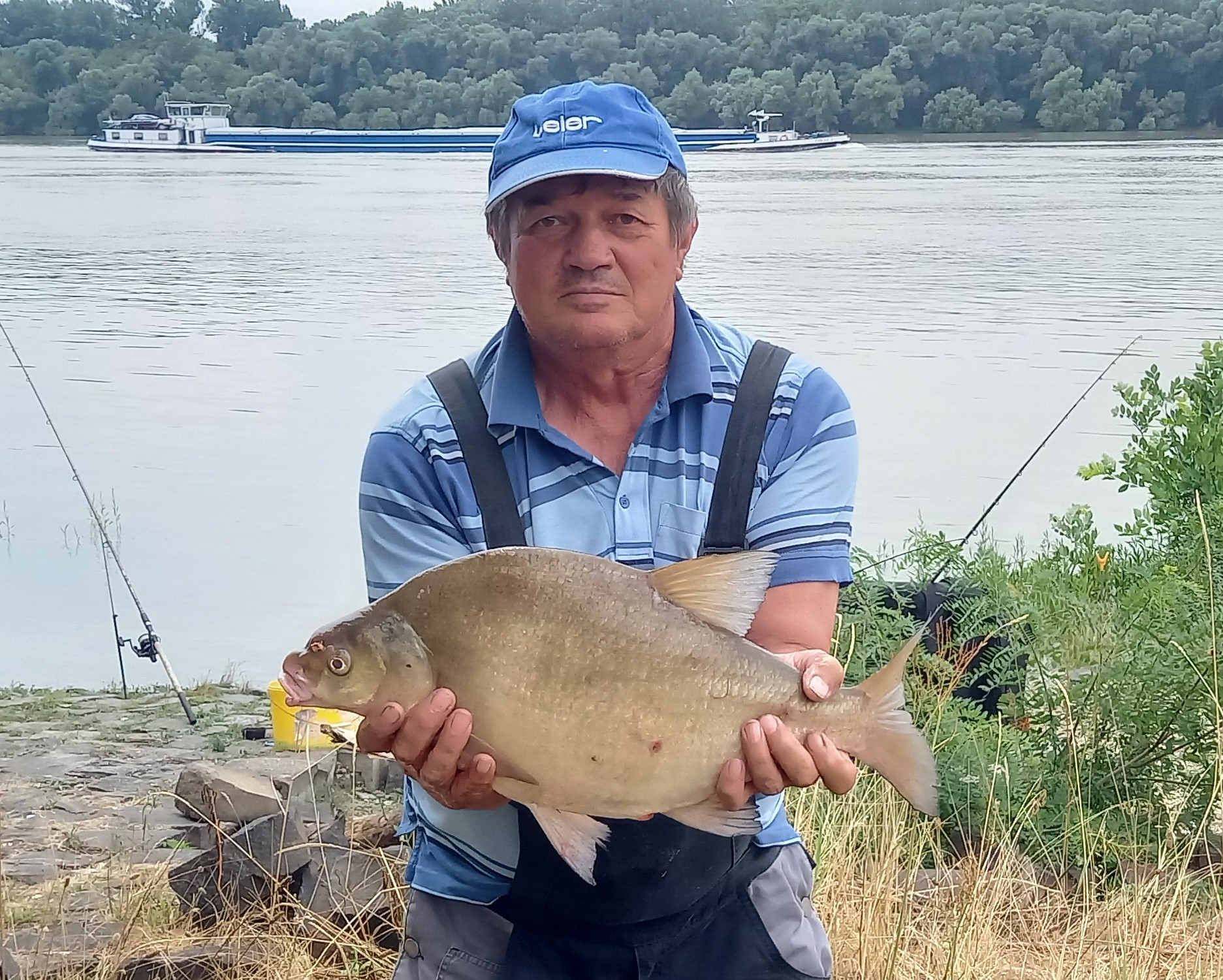 3,2 m-es 50 grammos fenekező bot, 0.25-ös zsinór. Derült idő, szélcsend, 10 perces fárasztás partról.