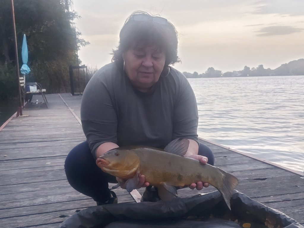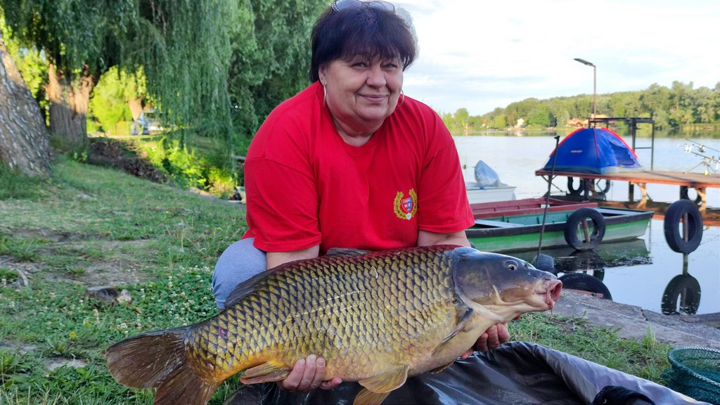 0.30-as fonott zsinór, monofil előke, 6-os horog. Kukorica csali, etetés bojlival. Szélcsend, 18 fok, 20 perces fárasztás stégről.