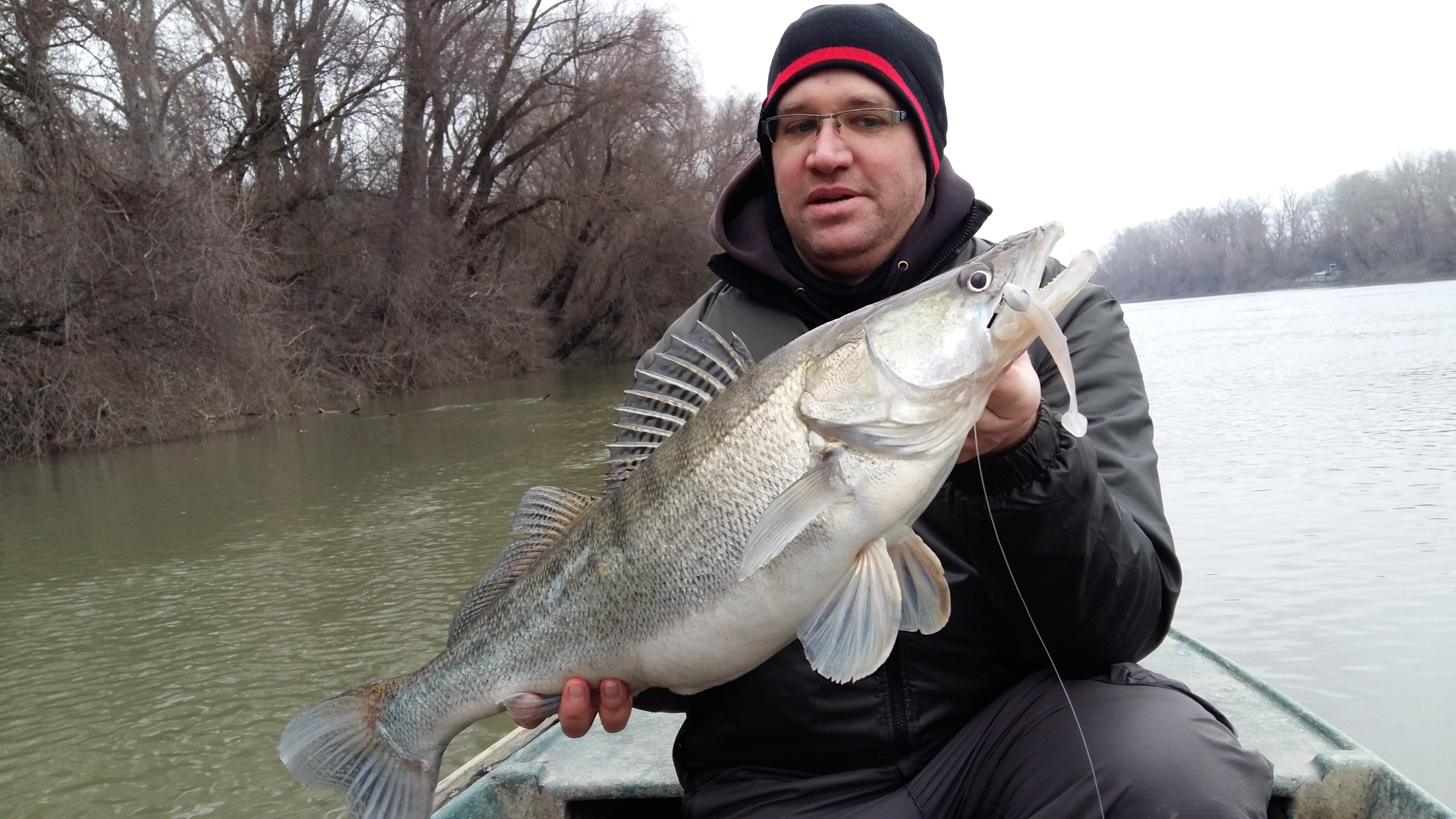 3 óra eredménylen horgászat után egy viszonylag gyenge kapással jelentkezett a hal, a 12 cm hosszú, 15 gr -os fejjel szerelt BIVA gumihalra. Egész nap borús idő volt. Mérlegelés után visszaengedtük.