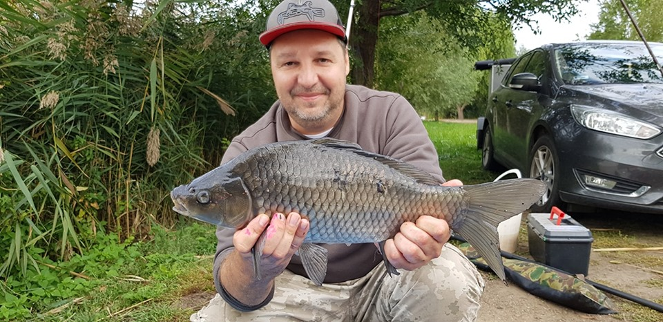 Gyönyörű őszi nap volt, ezért egy jó kis feederezésre indultam az egyik kedvenc tavamra, a Pródi horgásztavak, bojlis tavára. Már az etetés utáni pár percben kiderült, hogy ez egy botos peca lesz, mert minden dobást pár másodpercen belül kapás követett. Úgy a tizedik pontynál jártam, amikor a szerelék vízbe érését követően még le sem tudtam tenni a botot, mert karikába hajlott. Berántani nem kellett, de fárasztani se nagyon mert ellenállás nélkül hagyta magát kitekerni a hal. Amikor a stéghez ért, nem akartam hinni a szememnek, láttam ez bizony nem ponty, ez egy öreg karcsi! Át is hívtam a szomszéd sporit, aki megerősítette ez egy hatalmas kárász. Ezt követően még fogtam tizenpár potykát, ugyhogy jó kis őszi peca volt! :)